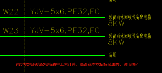 10.电气图纸上W22回路、W23回路2台雨水回收系统配电箱清单上未计算,请复核?