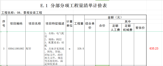 12.景观照明PE32电缆管清单量是329.8米,图纸实际计算量635.23米,请复核?