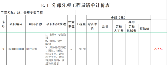 14.景观照明YJV-3*10电缆清单量是96.98米,图纸实际计算量227.52米,请复核?