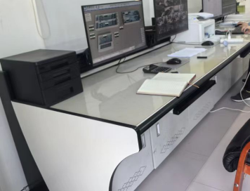 L型工作台,下部为镂空,台面宽度0.6m,长度图纸已明确,高度0.8m。