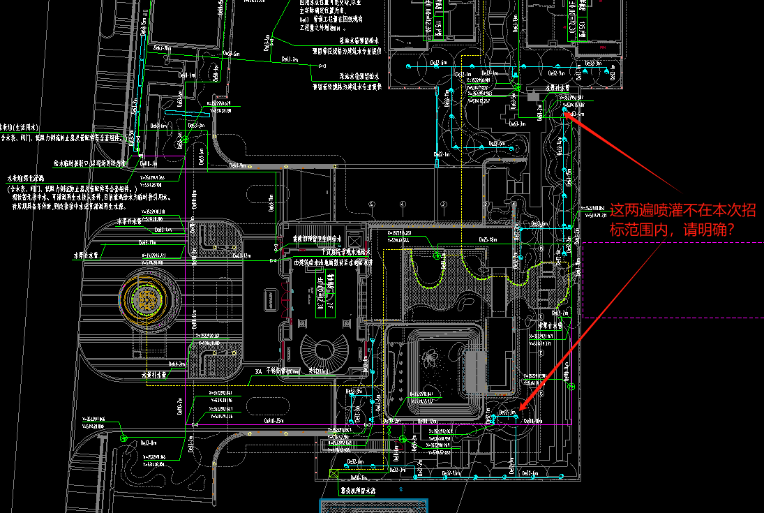 2.补充说明1.6项:绿化喷灌系统均不在本次招标范围内,请问:是不是截图上这两个位置的喷灌系统?请明确。