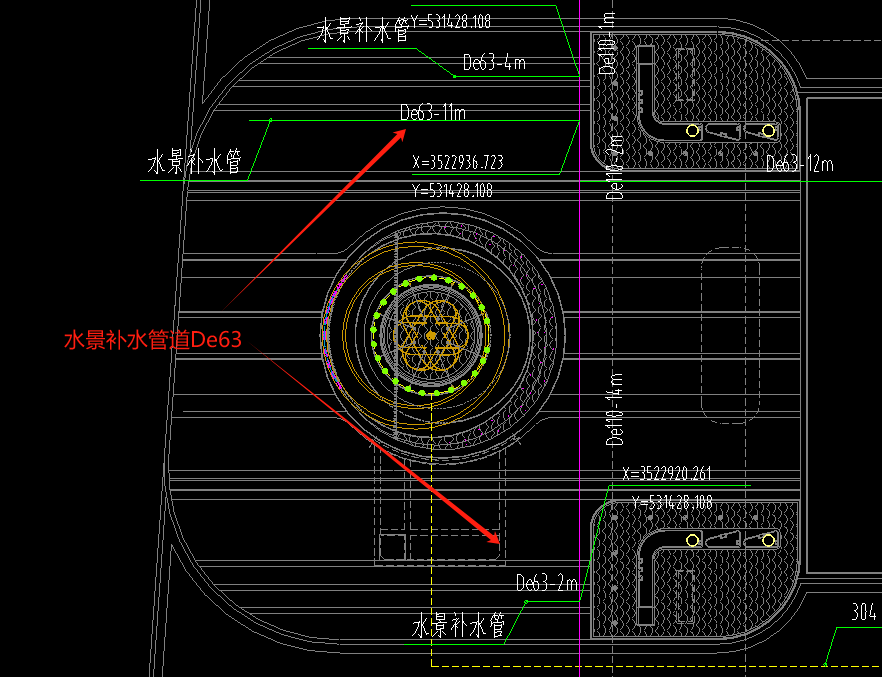 3.景观给水图纸上水景补水管道设计是De63,水景循环图纸上设计是De75管,请明确?