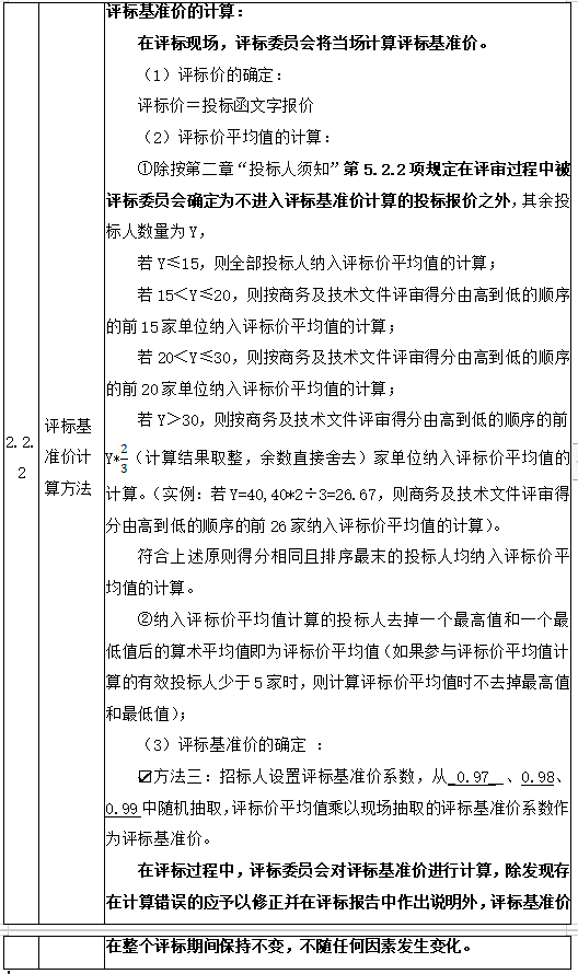 1.本项目招标文件第三章评标办法商务、技术、报价文件详细评审标准2.2.2评标基准价计算方法调整如下: