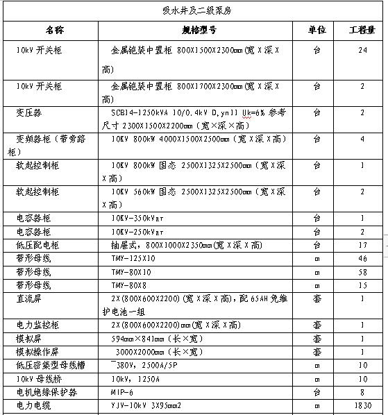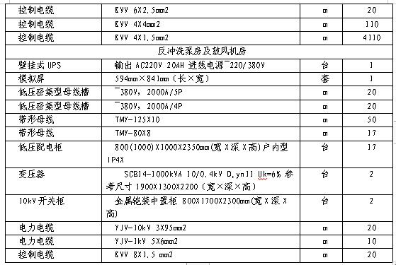 1. 吸水井及二级泵房配电房、反冲洗泵房及鼓风机房配电房内仅计设备安装、高压电缆及控制电缆敷设、绝缘垫铺设、系统调试,其余均不计入。