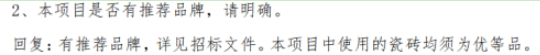 2.招标清单控制价补遗中说明,“有推荐品牌,详见招标文件。本项目中使用的瓷砖均须为优等品”,推荐品牌均为一线大品牌瓷砖,但编制控制价时,瓷砖主材却参考信息价中发布的普通品牌的瓷砖价格,主材价格相差较大,是否合理?