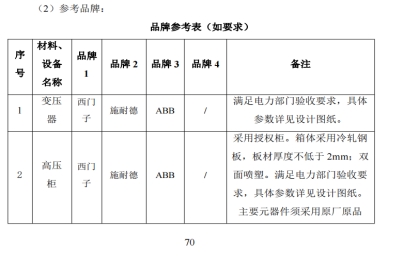 6.招标文件P10页参考品牌中高压柜采用三大品牌授权柜,经咨询厂家,三大品牌无20kV中置柜授权柜,请问20kV高压柜是否改为三大品牌原厂柜?