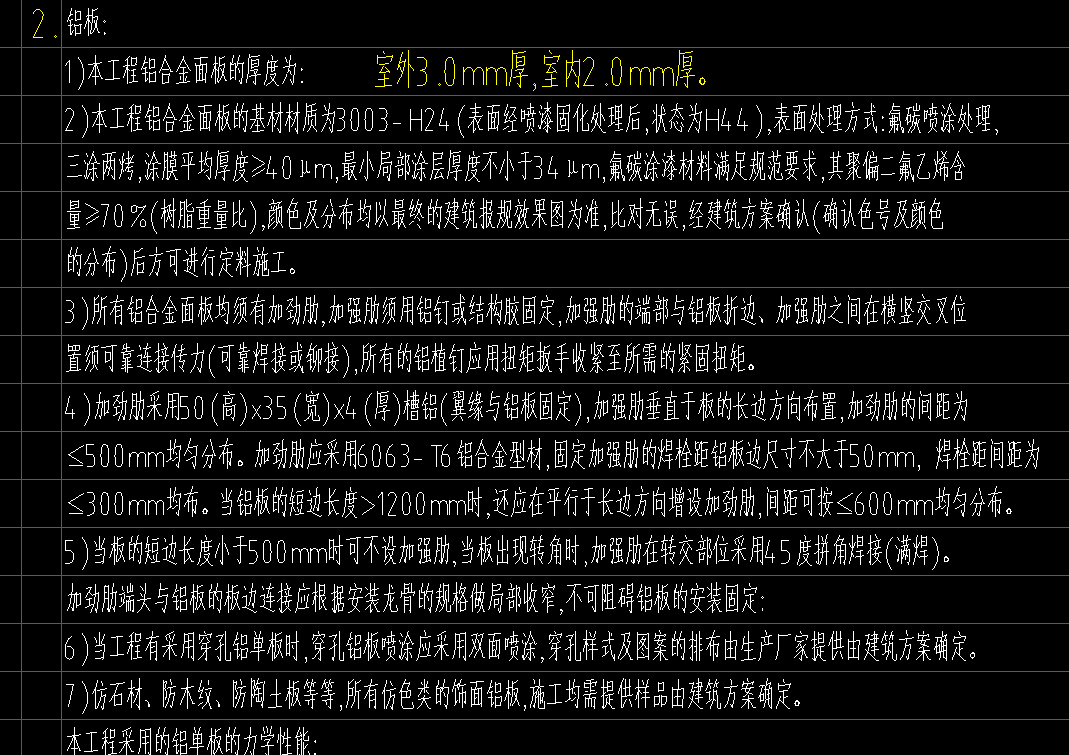 26.图纸技术说明中给定铝板加强筋布置规则,请明确本项目铝板加强筋是否按此规则布置。