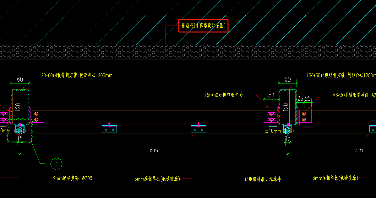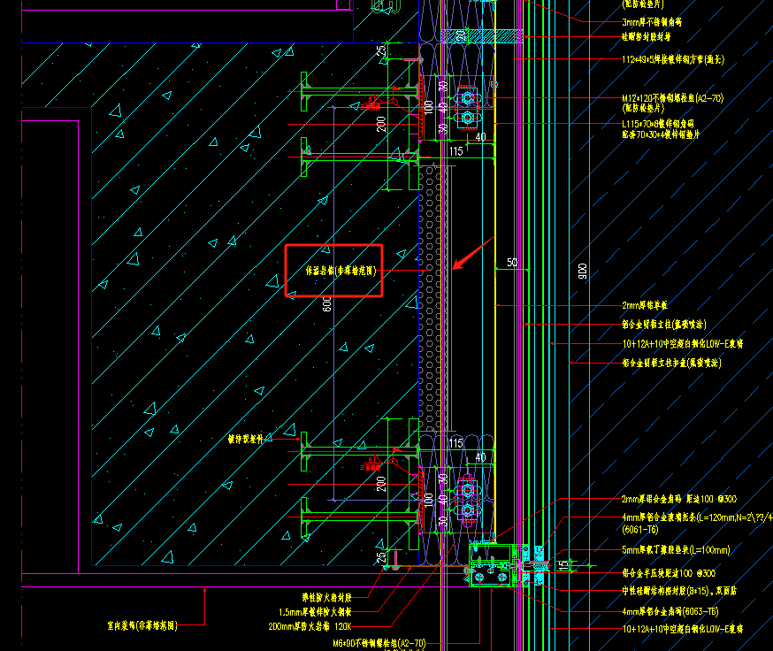 53.如下图处填充保温岩棉,招标清单未列项,是否在铝板幕墙中综合考虑?