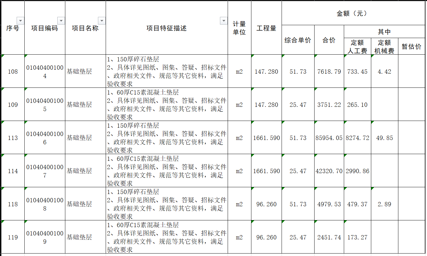 1.4#病房楼土建部分108、109、113、114、118、119项控制价综合单价偏低,是否单位有误?