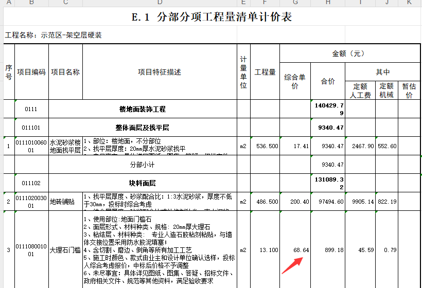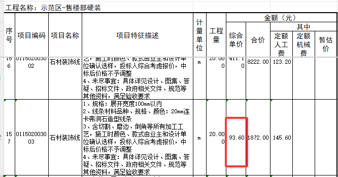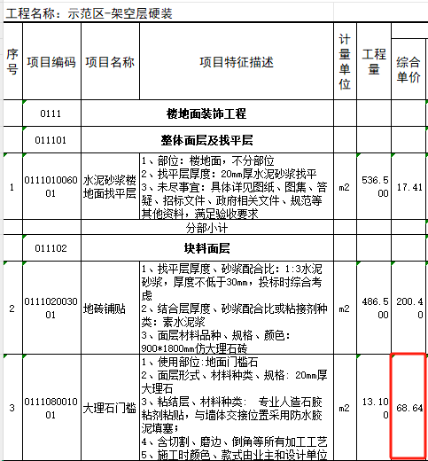 14.清单示范区公区-硬装、架空层硬装大理石门槛石综合单价是否有误?