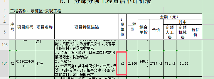3.示范区-景观工程第92项单位是否错误,请复核。