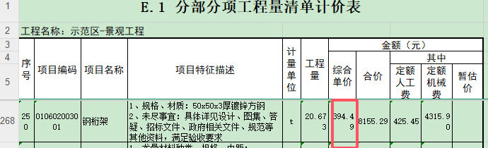 5.示范区-景观工程第250项控制价单价过低,无材料费,请复核。