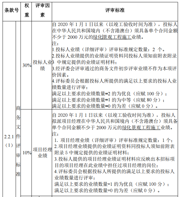 答:能够体现绿化工程施工内容金额不少于 2000万元的予以认可。