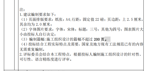 2)施工组织设计的篇幅不超过200页是否指包括深化设计方案在内的所有技术文件评分项加一起不超过200页?