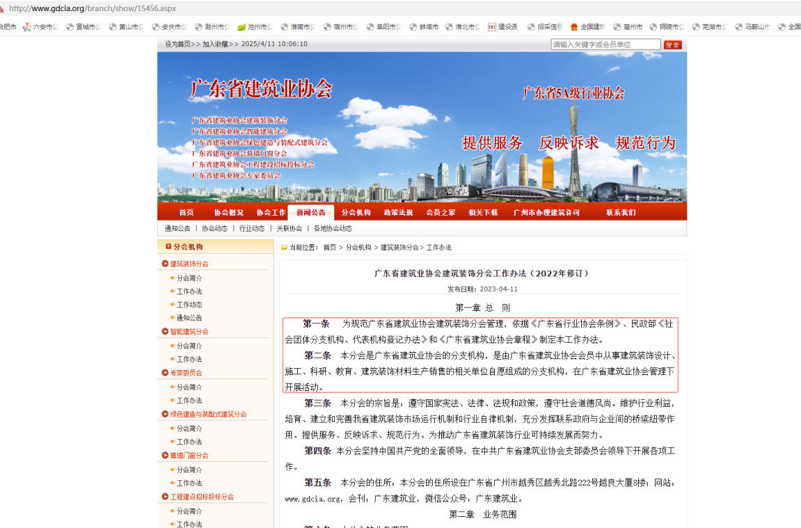 广东省建筑业协会建筑装饰分会工作办法(2022年修订)