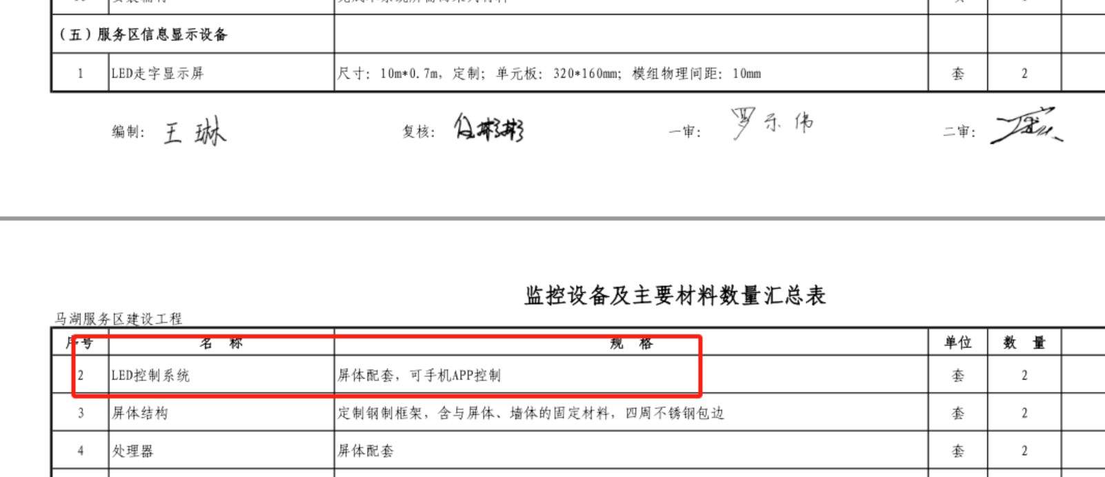 9.图纸45页服务区信息显示设备材料表相对应的第2LED控制系统随LED屏幕自带,清单不单独列项,投标单位综合考虑报价,中标后不予调整。