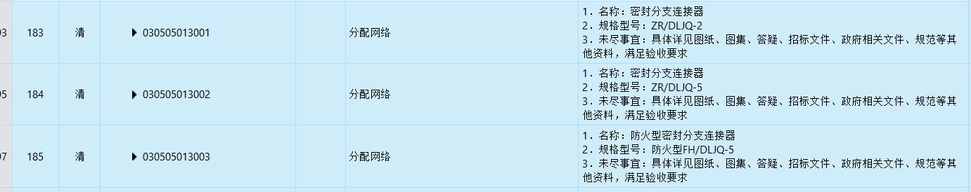 答:经复核工程量清单不漏项,图纸中是密封分支连接器,工程量清单详见科研办公楼(安装)第183、184、185项,投标人综合考虑报价,中标后不予以调整。