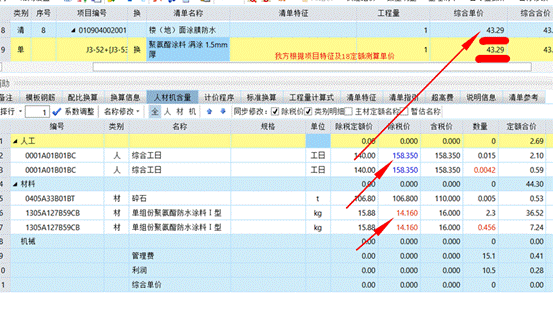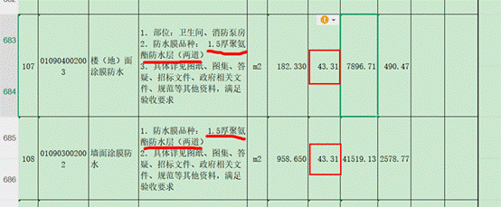 答复:此项投标单位按照1.5mm厚聚氨酯防水层(分两次涂膜成活)计入。