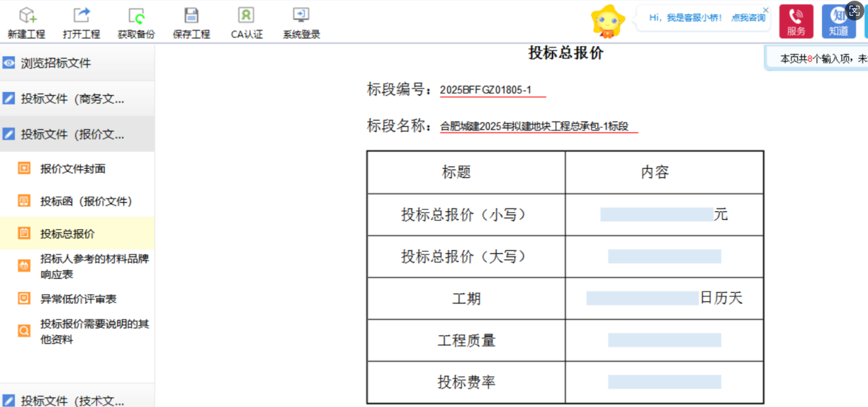 回复:例如1标段“ (招标项目名称) 标段”填写形式为“合肥城建2025年拟建地块工程总承包(招标项目名称)1标段”或“合肥城建2025年拟建地块工程总承包(招标项目名称)-1标段”均可。