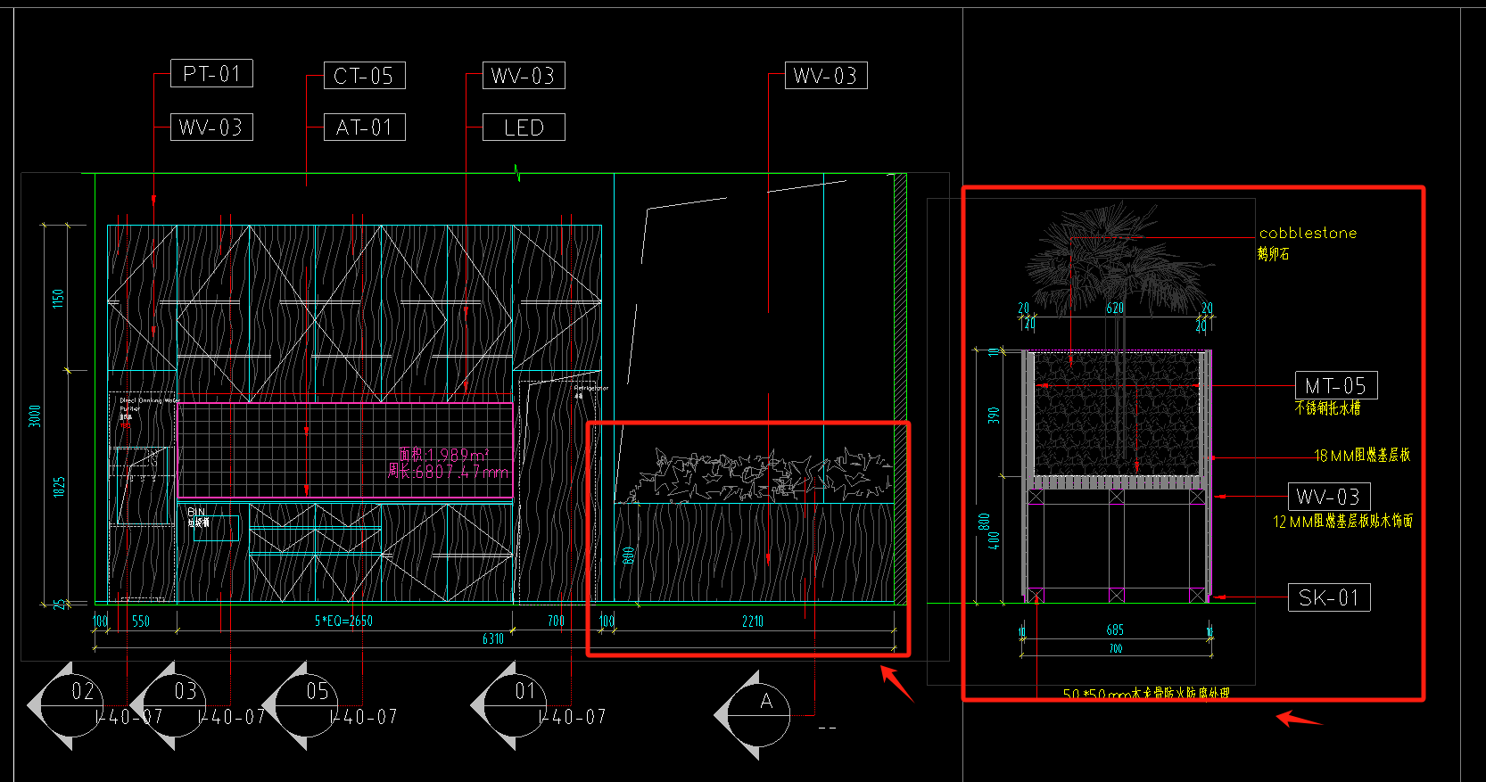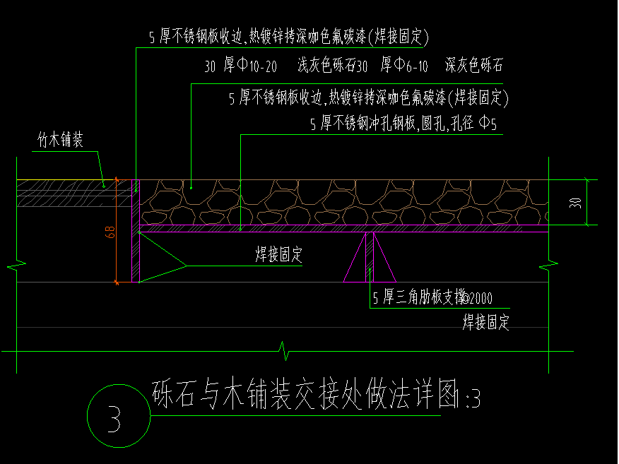 123.详见图纸景观-8(8/14),如下图所示,请明确折形钢板材质,采用镀锌还是不锈钢?
