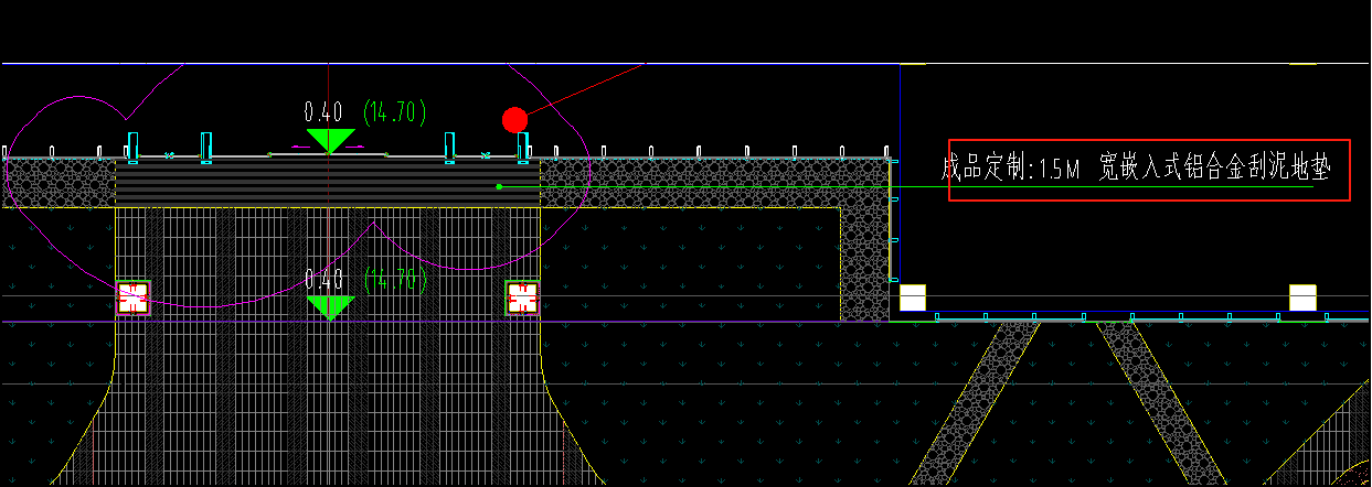 121.详见景观图纸8(4/14)对应清单109条,如下图所示,铝合金刮泥地垫无做法详图及铝合金厚度,请补充图纸?