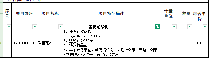 133.绿化工程最高限价中罗汉松,结合示意图及种植位置(主入口),综合单价过低,请复核?