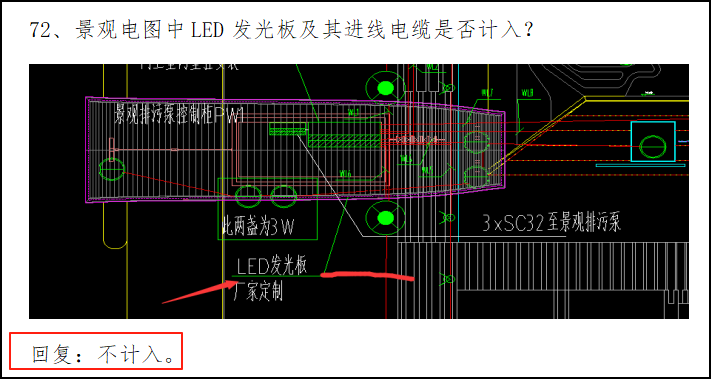 139.按招标资料中附带的答疑回复72条“LED发光板及进线电源为不计入”,电施-02灯具图例及接线系统图中,AL2、AL3配电系统图中的WL6至LED发光板的电源回路是否也按答疑回复72条,按不计入考虑?