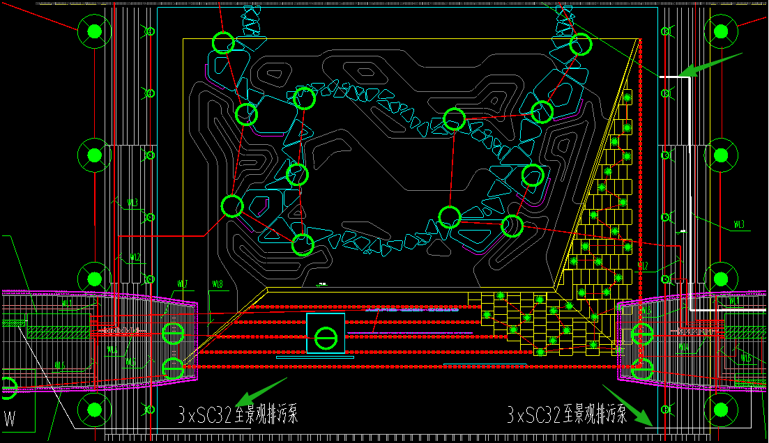 141.室外安装招标序号18电缆保护管清单项,招标清单量仅30.56米,参照电施-06景观照明总平面图二中,招标清单中SC32配管漏项如截图中3处绿色箭头中3*SC32配管(平面图上标注的白色管线部分)(排污泵控制柜PW1~3至排污泵)的相关工程量约371米,请复核调整?
