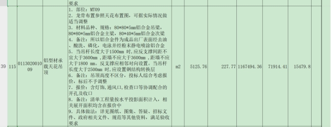 13.招标文件中提供的工程量清单装饰工程115项铝型材承载天花吊顶的材料与设计说明的材料表一中描述的不一致,请问以哪个为准?且该项清单限价低于市场价,请重新复核主材价格。