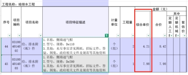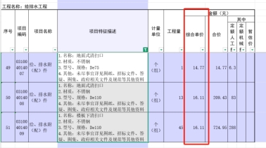 答:经复核,给排水工程中第44、45条综合单价无误,第49条综合单价应为52.28元/个,第50条综合单价应为84.91元/个,第51条综合单价应为84.91元/个,由于金额影响较小,控制价不调整,投标人综合考虑报价,中标后不予调整。