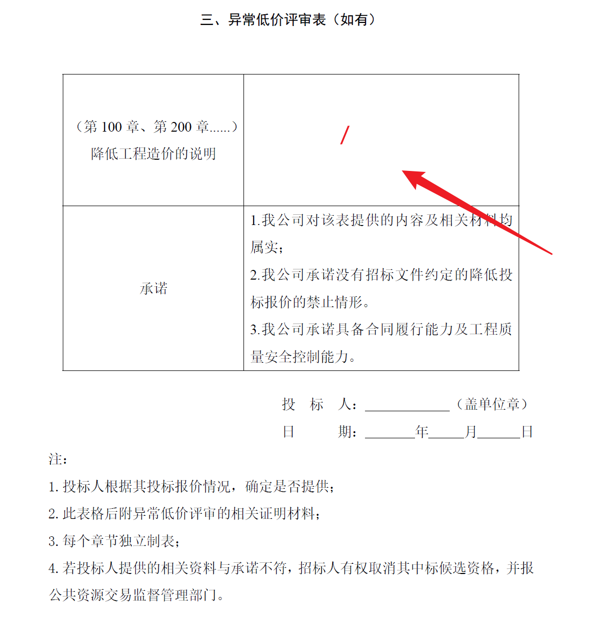 19.异常低价评审表如果没有发生,是否根据招标文件提供的模板在后方填“/”提供即可。