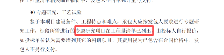 21.专题研究费用招标文件中提出清单单独列出,但下发清单上未列明该项清单