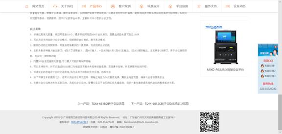 经官网查询,数字会议主机的参数明显偏向于广州塔克兰森信息科技有限公司;