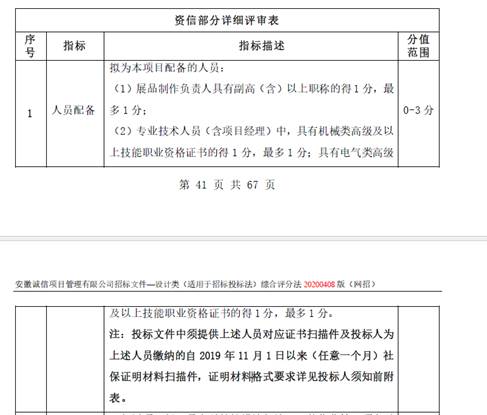 5.我方对资信部分详细评分表的标准中“机械类高级和电气类高级职称只用提供上述人员缴纳的自2019年11月1日以来(任意一个月)社保证明材料扫描件”的要求,提出疑问,该截图如下: