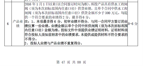 | 合肥供水集团供水工程直埋式软密封闸阀合格供应商项目的补疑2 项目编号:2020BFFAZ00483 1.招标文件第五章 评标办法 9.2.2 技术部分详细评审指标 第4条:产品业绩(P47页)评分标准中,如果同一合同甲方签订的业绩仅算一份业绩,是否可以理解为同一甲方签订合同可以同时提供,累计业绩超300万可算一份符合要求业绩得分 2” ? 招标文件第五章 评标办法 9.2.2 技术部分详细评审指标如下:  答:以上情况不予认可,按招标文件执行。 2.招标文件第五章 评标办法 9.2.2 技术部分详细评审指标 第5条:投标人业绩(P48页)评分标准中,如果同一合同甲方签订的业绩仅算一份业绩,是否可以理解为同一甲方签订合同可以同时提供,累计业绩超300万可算一份符合要求业绩得分 3” ? 招标文件第五章 评标办法 9.2.2 技术部分详细评审指标如下:  答:以上情况不予认可,按招标文件执行。 3.招标文件第四章招标需求中(二)技术要求第5条:投标人中标后,须按招标人零星使用要求免费提供加长杆。 请明确一下,每种规格闸阀所需提供免费加长杆的数量。 答:仅有零星使用需求,无法明确具体数量。 4.请问“投标保证金的到账截止时间是否延期到2020年7月6日10:30”? 答:是。 注:此补疑视同招标文件的组成部分,与招标文件具有同等法律效力。 2020年6月19日 |