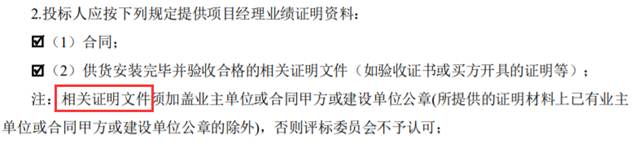 招标文件P26页项目经理业绩证明材料要求为: