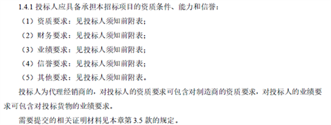 此处资质是针对投标人的,请问投标货物制造商的资质要求是什么?