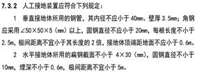 25、工程量清单里接地极采用的角钢规格为50*50*4mm,按照国家相关规范城市道路照明工程施工及验收规程(CJJ 89-2012)里7.3.2条规定,角钢应采用L50mmx50mmx5mm以上,施工图纸中也采用5mm厚度,建议参照相关规范和设计要求执行。(见下图一图二)