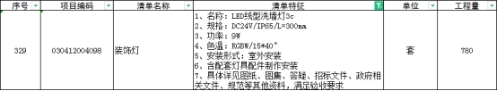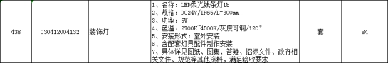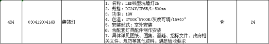 答:《蜀山区楼宇夜景亮化二期工程》灯具技术参数中编号10灯具,长度500mm,功率15W,色温RGBW。
