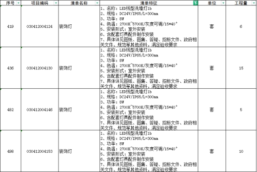 61、清单如下几项,功率8W和9W,L=300MM,按照灯具技术参数表LED线型洗墙灯1b,功率12W ,L=500MM,以哪个为准?
