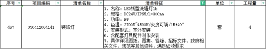 63、清单如下,功率9W,L=300MM,按照灯具技术参数表LED线型洗墙灯3c,功率24W ,L=300MM,以哪个为准?