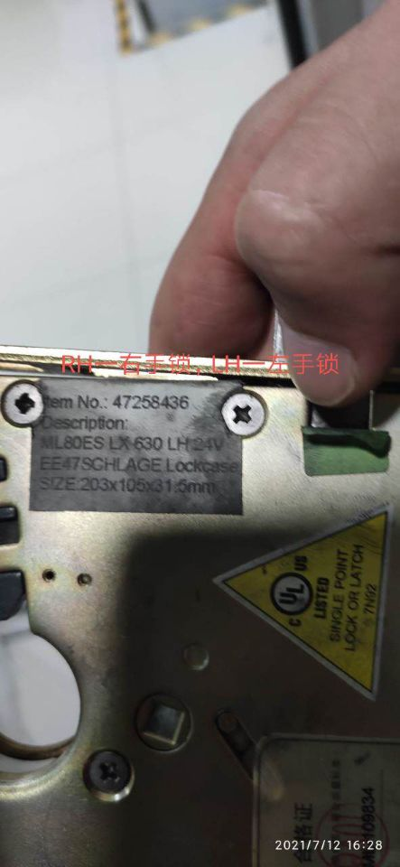 型号:ML80ES LX 630 RH 24V,EE51SCHLAGE lockcase,右手双侧电控锁,内置锁舌监控开关,最大工作电压DC24V,尺寸大小:203*105*31.5mm |