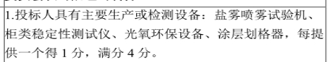 答:按照招标文件执行。企业自身的生产设备及原材料成品的检测设备是体现一个潜在投标人对成品及采购的原材料的二次复检能力,本次采购的家具是企业员工长期生活工作的场所,必须确保产品的环保度及功能性,有原材料及成品的检测设备可以更好的确保提供产品的质量和服务。