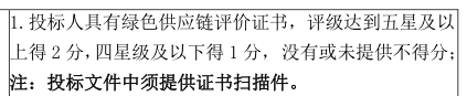 答:按照招标文件执行。绿色供应链评价证书和称绿色供应链认证证书是不同的证书。