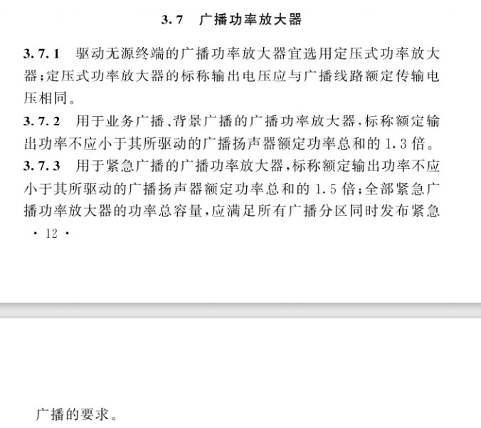 质疑内容:《公共广播系统工程技术标准》国家标准,公共广播系统工程设计3.7广播功率放大器: