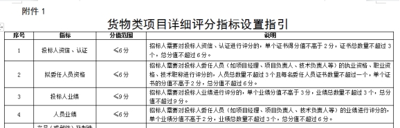 16、根据投标人对招标文件第五章供货需求“技术评审要求 表”中的产品指标要求响应情况进行评分,全部满足的 得 20 分;以 20 分为基础,每有一项(即:表中序号项, 1 个序号项下有一条不满足即视为此序号项不满足)不满足的扣 2 分,扣完为止。 注:各项要求提供相关证明材料的,投标人须在投标文件中提供相关的证明材料,若不提供或者达不到招标文 件要求的,此项视为负偏离并作相应扣分处理。