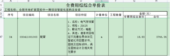 4.合肥市地矿家园初中一期项目智能化采购及安装单位工程量清单第 34项(项目编码:030411001003),工程数量由500调整为 200,具体如下: