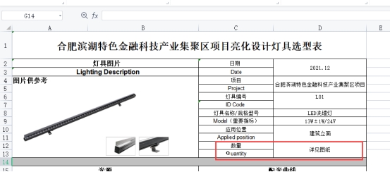 答:以合肥滨湖特色金融科技产业集聚区项目亮化设计灯具选型表为准。