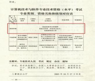 质疑内容:国人部发【2003】39号文第十条规定,通过计算机专业技术资格(水平)考试,并获得相应级别计算机专业资格(水平)证书的人员,取得高级资格可聘任高级工程师(文件截图附后)。