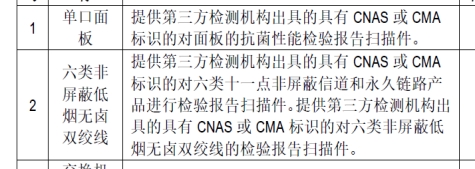 9、招标文件P132,(四)性能指标响应表中,综合布线要求提供如下资料: